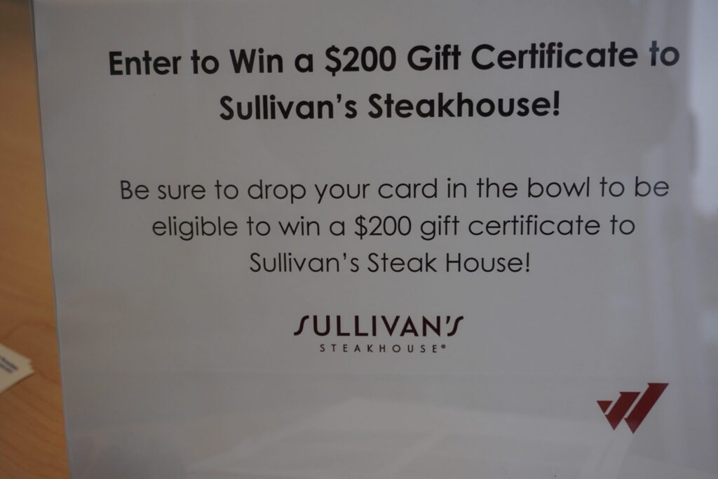 Congrats to Nick Baginski, winner of the $200 gift certificate to Sullivan’s Steakhouse!